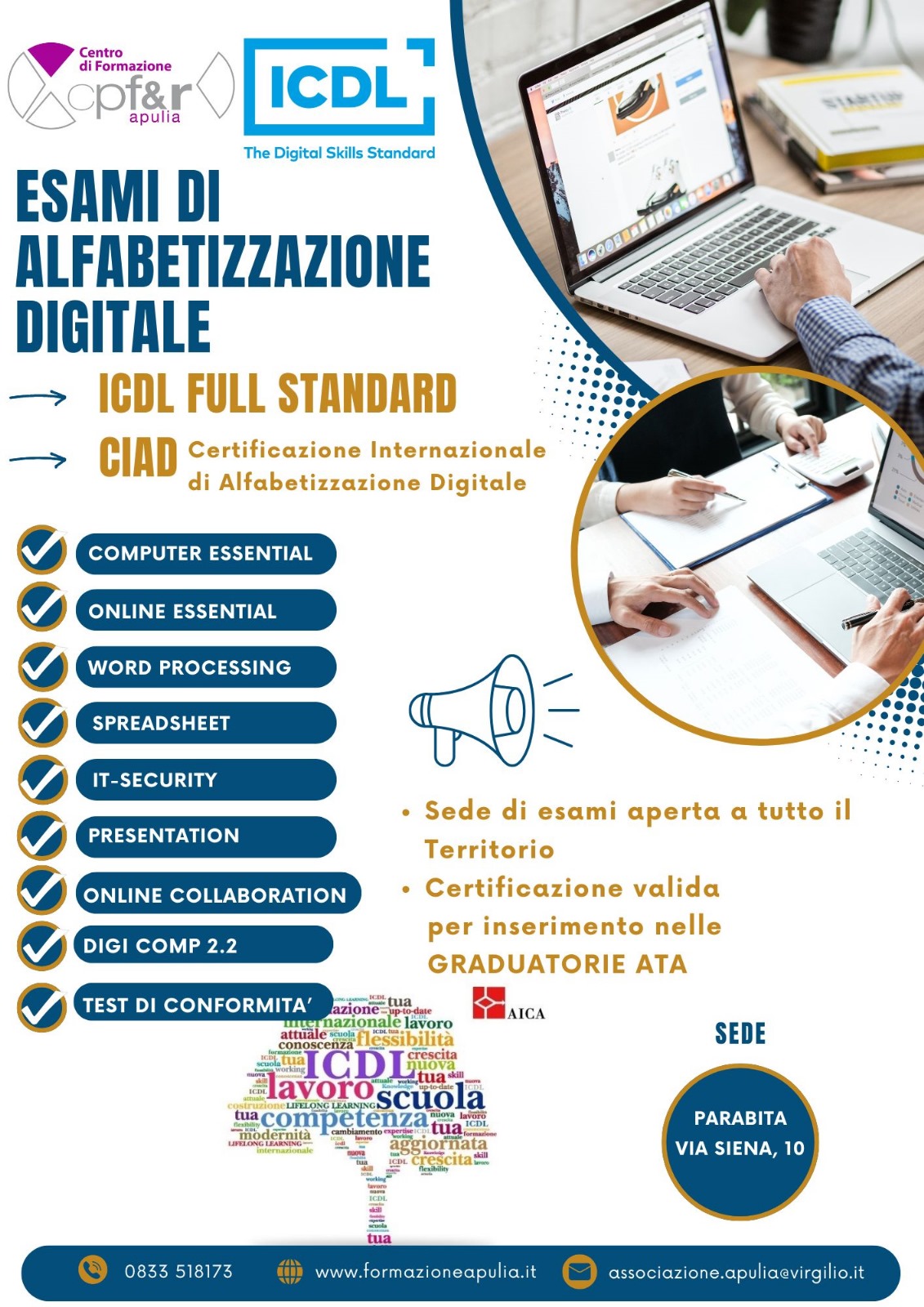 Esami di alfabetizzazione digitale, organizzati da C.P.F.& R. APULIA, Ente di Formazione accreditato Aica!
